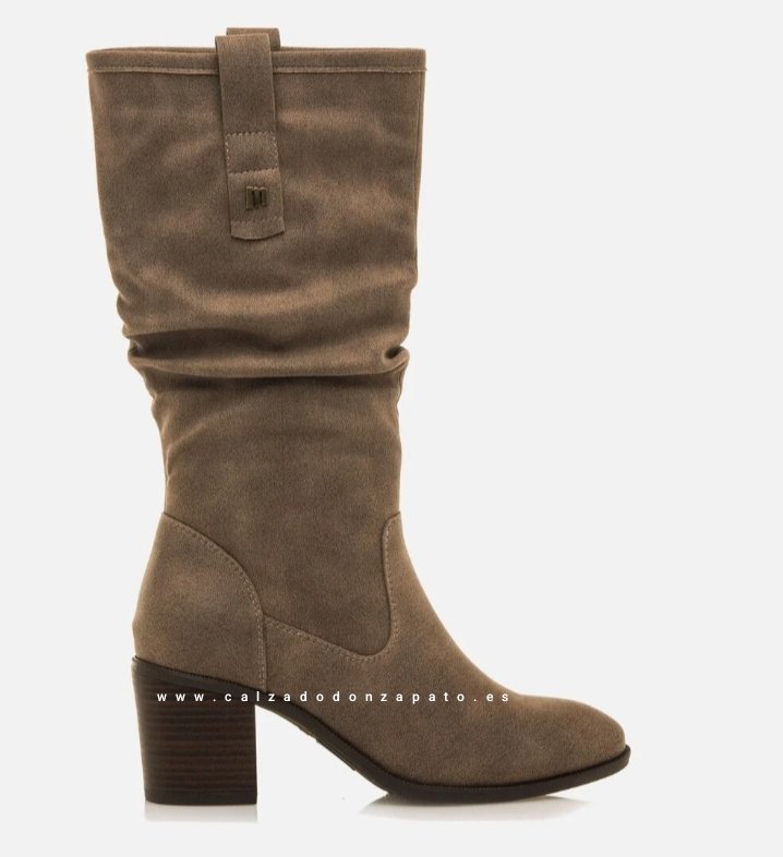 Bota mujer Mustang negra de estilo campero. Caña alta con tacón ancho y acabados arrugados en la parte superior, ideal para el día a día.
