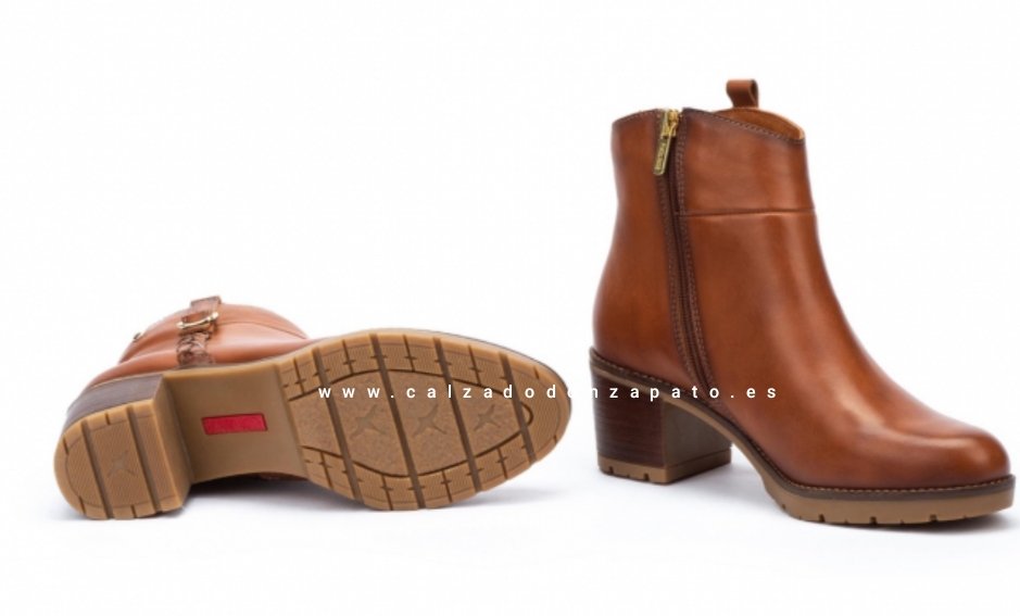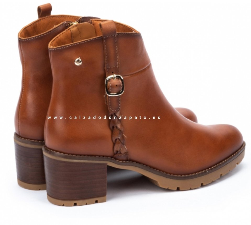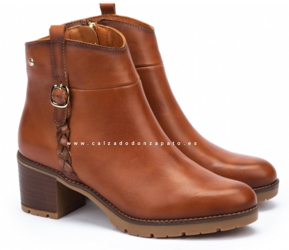 Botines mujer con ajustes al pie mediante cremallera lateral interna. Detalle de hebilla metálica en el lateral con tira de piel trenzada.Bloque con tacón y altura de tacón de 6cm.