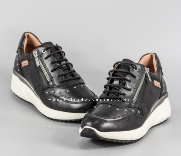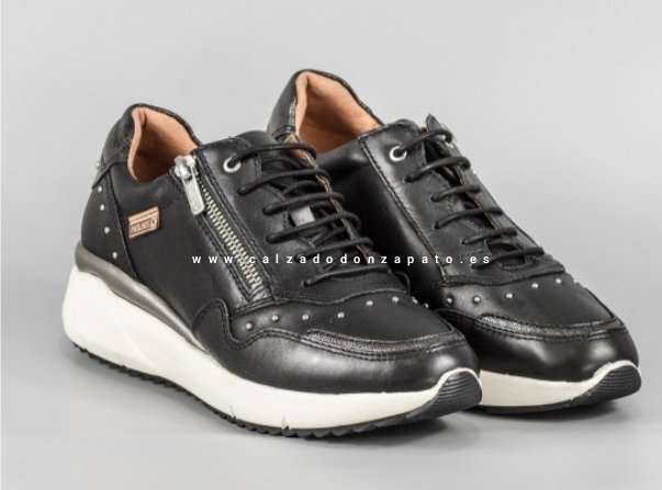 Deportivo SELLA pikolinos,diseñado en color negro,cuña de más de 4 cm,planta interior acolchada y extraíble.Suela de goma .