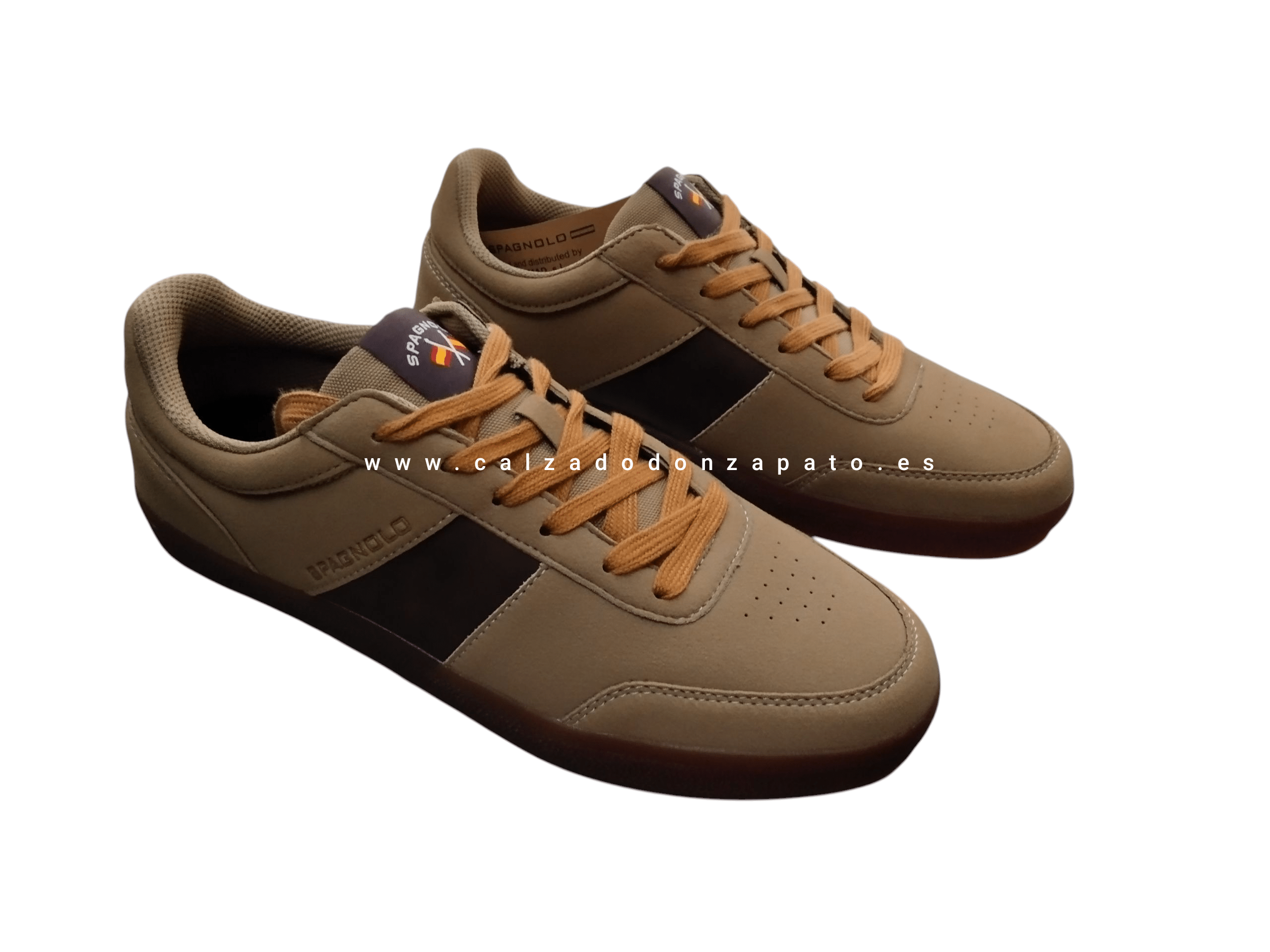Cierre de cordones ,fabricada en piel sintética, con suela de goma color caramelo.Plantilla acolchada y extraíble.